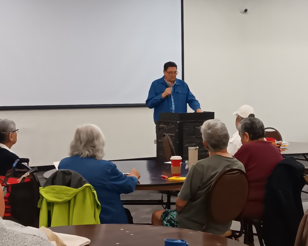 We gathered on Saturday, August 23, at the Kikiwak Inn’s Bignell room for a day of teachings. The Rev. Vince Solomon, Indigenous Ministry Developer of the Diocese of Rupert’s Land, opened our day with a short Gospel-Based discipleship reflection. He then began to share about his own vision of the Gospel taking root in Indigenous communities. Rev. Vince acknowledged the harm done to Indigenous people by Christian missionaries, especially those who aligned themselves with political powers. Yet he reminded us that the Gospel is powerful, and the hope that we as followers of Jesus have is not based in the church: our hope is in the person of Jesus Christ. Vince spoke passionately about the truth of Jesus – that he has come to fulfill the Sacred Teachings just as he came to fulfill the Law of Israel, and that Jesus is the greatest elder of all. He encouraged the leaders of HBCM to continue to teach the truth of Jesus. Rev. Vince’s teachings reminded us that God our Creator speaks through visions and dreams, the land, and through elders and teachings from our communities.