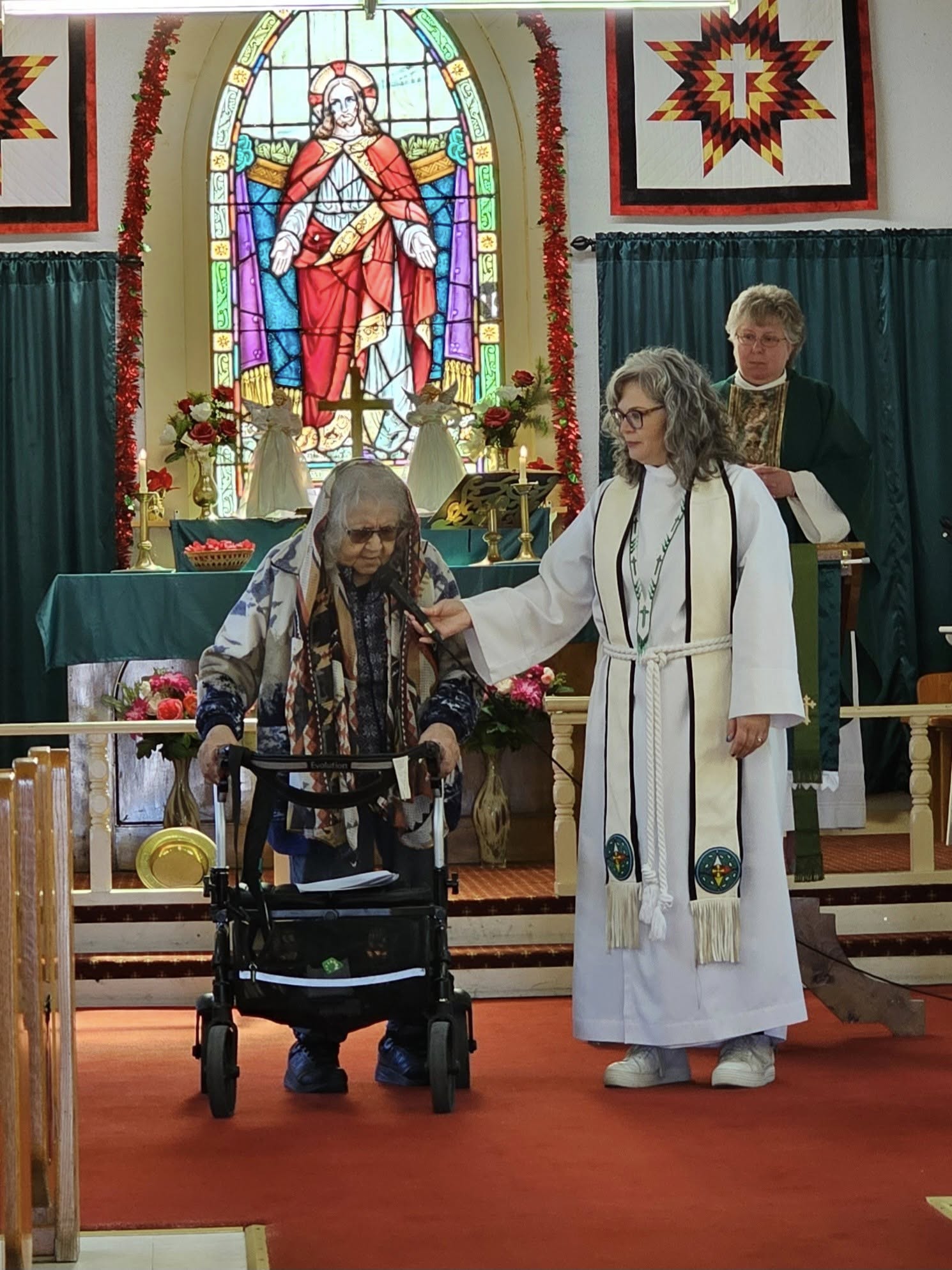 The sun finally came out on Sunday, August 24 as we gathered at Church of the Messiah, OCN, for a joint celebration service. Worshipers from Messiah, Church of the Redeemer, Big Eddy, and Christ Church, The Pas, came together to sing, pray, and share the Lord’s Supper. Bishop Rachael presided, the Rev. Dr. Ray Aldred preached, and the Ven. Lydia and the Rev. Vince prayed and anointed all who desired healing prayers. We were also blessed to hear a message from the Rev. Priscilla Constant, one of the first Cree women to be ordained (along with the late Rev. Verna Jebb). Rev. Priscilla encouraged all to “keep going” in their faith and in their service. The Rev. Dr. Ray reminded us all to “look up” and keep our focus on Jesus in our midst. The offering of over $700 was designated for ongoing student support at Henry Budd College. Over one hundred people gathered to share the presence of Jesus at the Table, and we were mightily blessed!